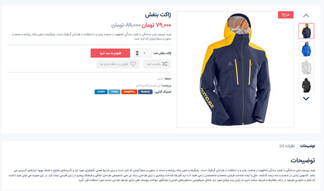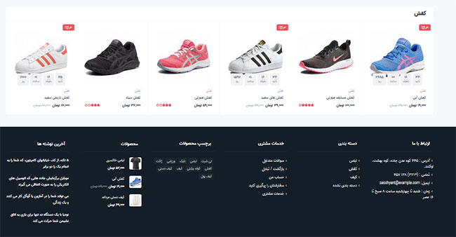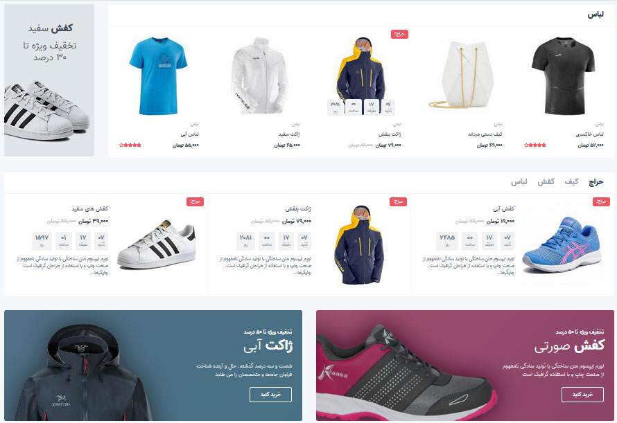 سایت فروشگاه اینترنتی در راستای پوشاک و لباس ( مردانه ، زنانه ، بچگانه ، ورزشی و...) با امکانات مختلف که آیتم های زیادی رو برای شما در قسمت مدیریت و همچنین راحتی بالایی برای مشتریان به ارمغان می آورد ...