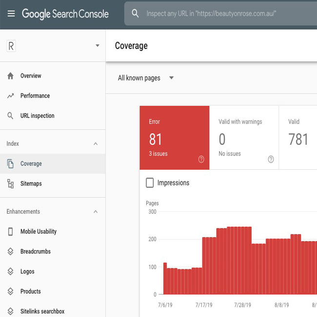 برای بررسی و رفع خطاهای ایندکس گوگل در سایت وارد سرچ کنسول سایت شوید. در قسمت coverage تمامی خطاهایی که وبسایت شما با آن مواجه است را می توانید مشاهده کنید.
