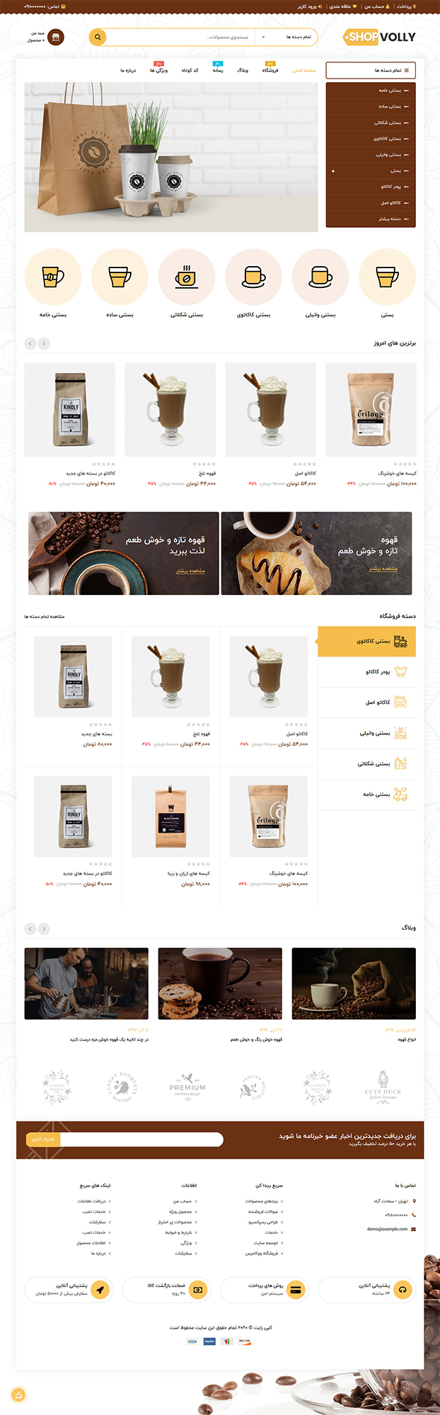 طراحی سایت فروشگاه تخصصی قهوه دان و قهوه ترک و قهوه ساز و ابزار و تجهیزات کافی شاپ