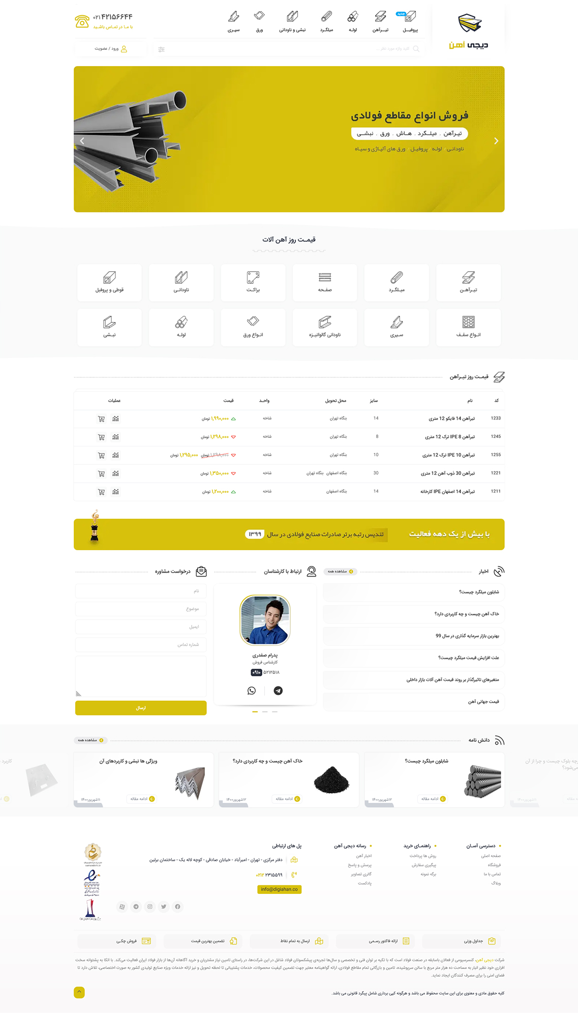 دیجی آهن ، قیمت امروز آهن ،طراحی سایت فروشگاه اینترنتی آهن آلات