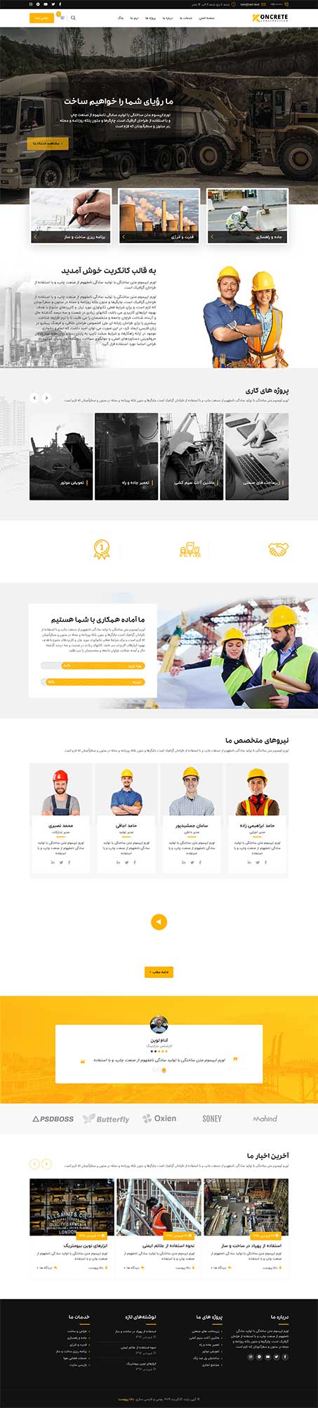 - اهداف و چشم انداز شرکت: اعتبار و پرستیژ شما در چنین صفحه ای میتواند بلندپروازی و فکرهای بزرگ شرکت ساختمانی شما را به مشتری نشان دهد. نقش قالب های گرافیکی در چنین صفحاتی بسیار مهم است.