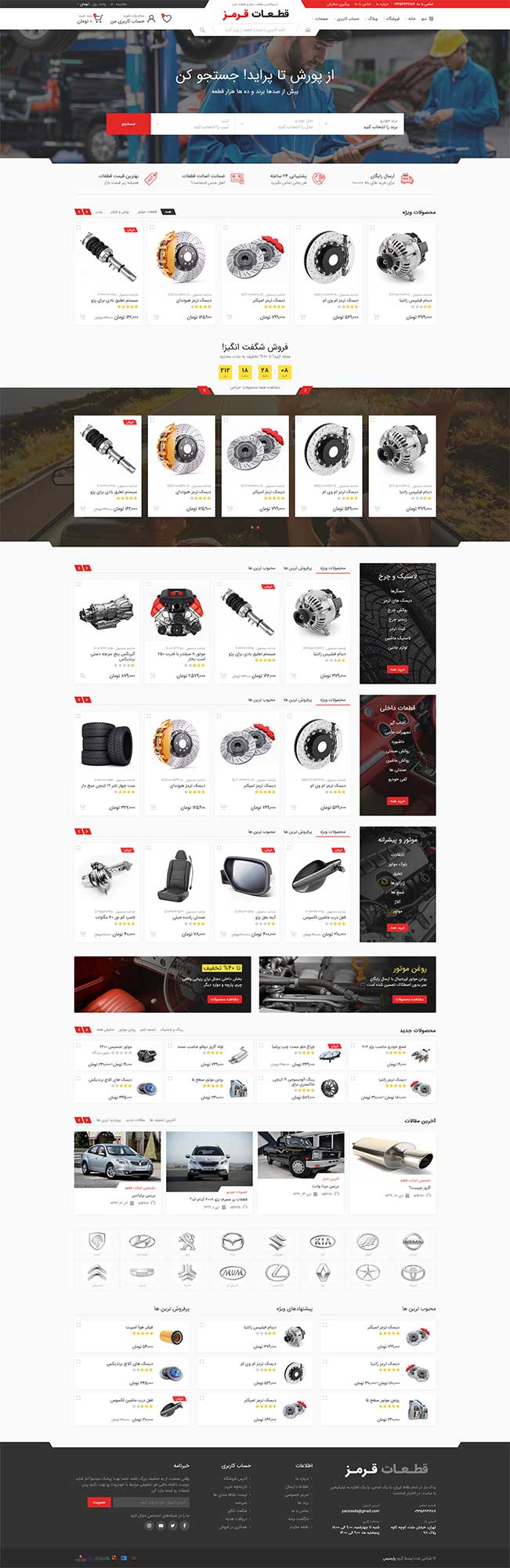 راهاندازی فروشگاه آنلاین و ورود به فضای مجازی مورد استقبال انواع کسب و کارها قرار گرفته است. خرید و فروش آنلاین هم برای صاحب کسب و کار و هم برای مشتری مزایای زیادی به همراه دارد. شما به عنوان صاحب کسب و کار میتوانید محصولات خود را تنها به مخاطبین هدف بدون محدودیت مکان و زمان معرفی کرده و با یک هزینه مقرون به صرفه، بالاترین بازدهی را در فروش محصولات خود ایجاد کنید. از سوی دیگر مشتری نیز با انگیزه صرفهجویی در هزینه و زمان خود، ترغیب به خرید میشود. از این رو طراحی سایت لوازم یدکی خودرو انتخاب مناسبی جهت رونق کسب و کار شما است.امکانات سایت :