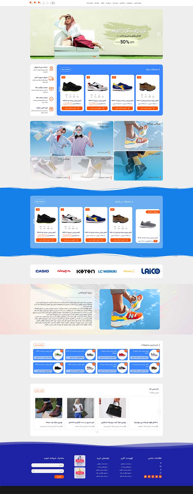- گالری: در این بخش باید عکسهای محبوبترین کالاهای سایت، تصویر شرکت، شعبهها و کارمندان شرکت قرار گیرد.