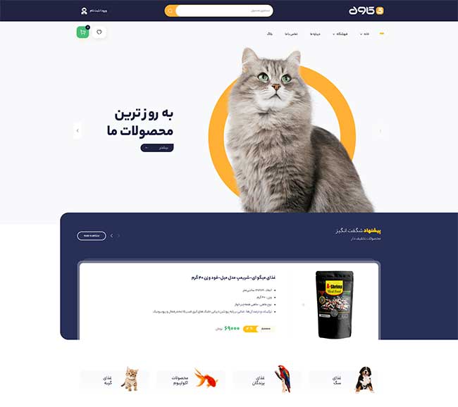 طراحی سایت پت شاپ ، فروشگاه لوازم نگهداری حیوانات خانگی