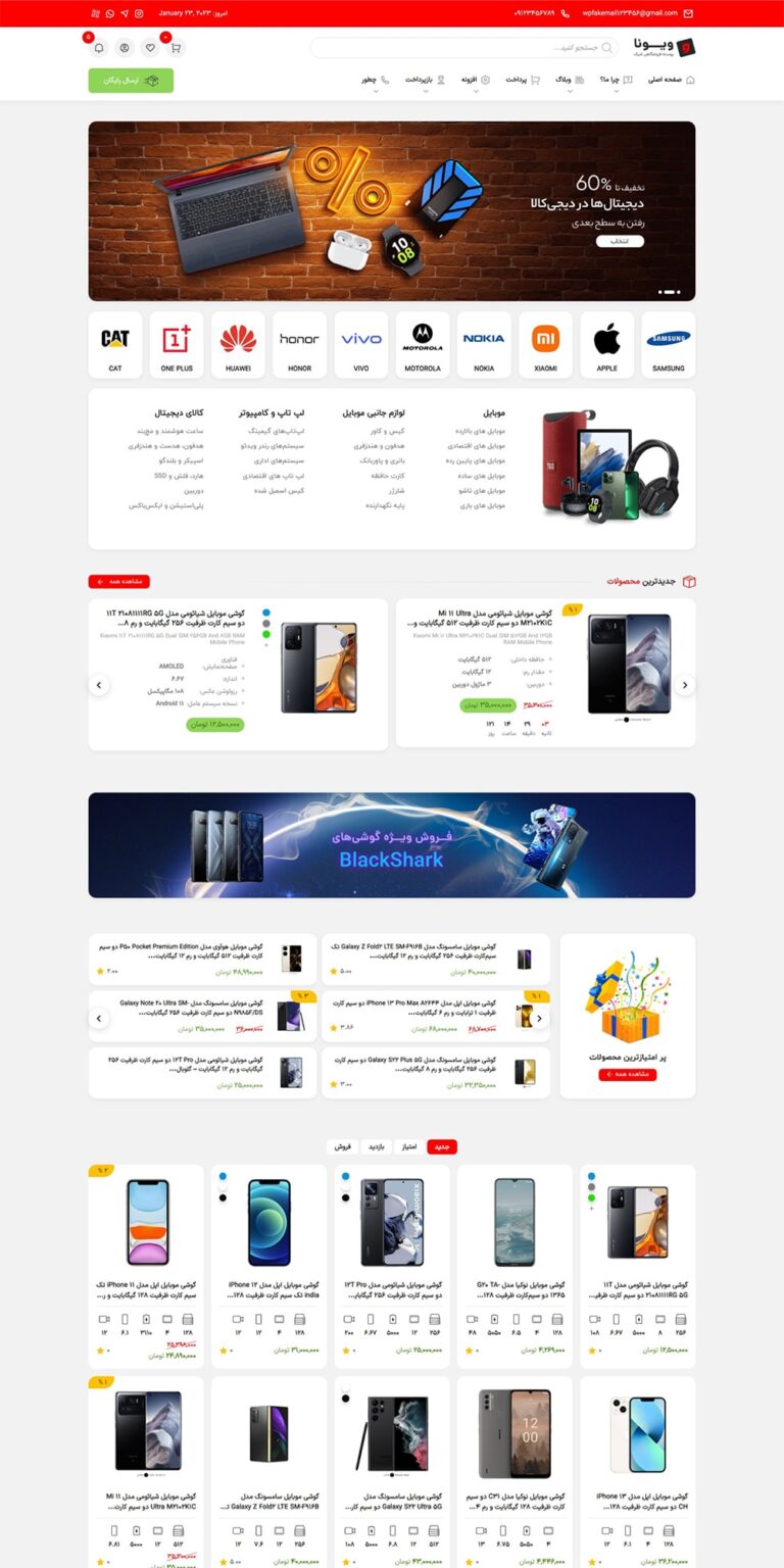 با برنامه ریزی هدفمند و اجرا یک طرح جامع وبسایت گوشی موبایل را با استفاده از CMS طراحی کردیم. در این وبسایت با استفاده از جدیدترین ماژول ها و پلاگین ها توانستیم که وبسایت سبک با امکانات بالا را فراهم کنیم. در این وبسایت حدود 7 هزار خط کد CSS اختصاصی و در حدود 1 هزار خط کد های بک اند استفاده شده است . در این وبسایت با استفاده از ماژول های اختصاصی به استفاده هر چه بهتر کاربر از فروشگاه اندیشیده ایم. فروشگاه اینترنتی گوشی موبایل با ویژگی های منحصر به فردی همچون : ورود با شماره موبایل ، فاکتور اختصاصی ، ماژول لوازم جانبی شخصی سازی شده ، جستجو هوشمند ، دو نام بودن محصول ، سرعت لود بالا در بخش سبد خرید ، سبد خرید هوشمند و... جز نمونه کارها تیم رادیتو میباشد.همانگونه که مشخص است و میدانیم این است که فروشگاه اینترنتی گوشی موبایل با توجه به اینکه از خدمات پشتیبانی ویژه رادیتو استفاد میکنند ، در هر لحظه نیز بر روی طراحی سایت و قسمت مدیریت این وبسایت در حال فعالیت و بررسی هستیم. بدیهی است که این تغییرات باعث خواهد شد که تغییرات ظاهری و درونی زیادی داشته باشیم .