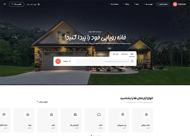 - دارای جستجوی پیشرفته بر اساس نوع املاک، شهر، استان و …