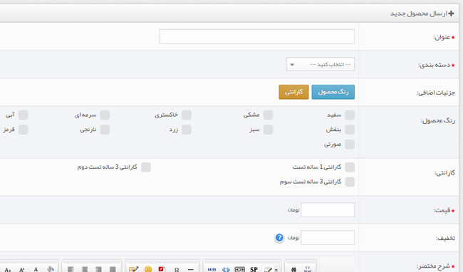 - ارسال محصول با امکان درج تصاویر از محصول به صورت نامحدود