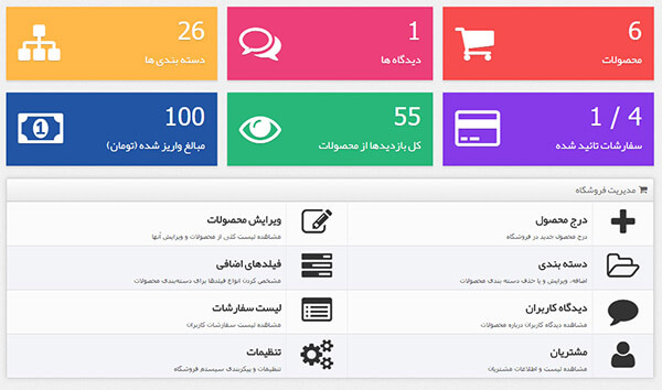 - تنظیمات کامل فروشگاه در پنل مدیریت