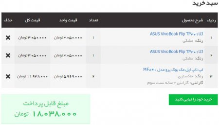 - سبد خرید ( لیست محصولاتی که کاربر قصد دارد )