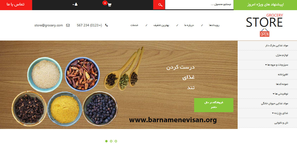 سه ستونه بودن فروشگاه– دارای دو اسلایدر اتوماتیک در قسمت بالای فروشگاه